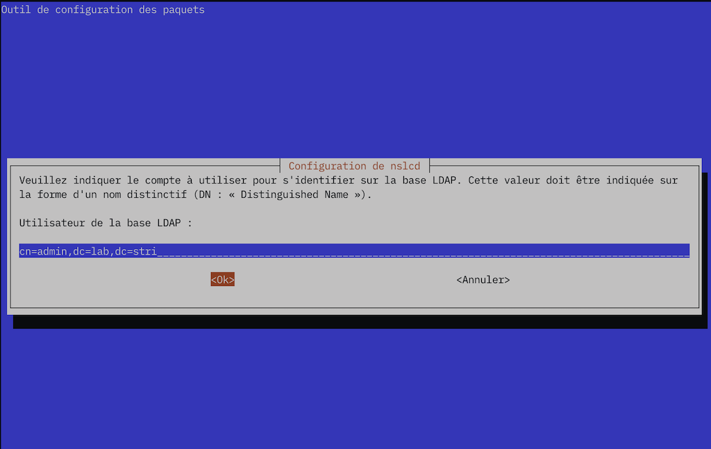 Lors de l'installation des principaux paquets de bibliothèques LDAP, on passe par une série de menus debconf qu'il faut renseigner correctement pour accéder au serveur LDAP de façon transparente.